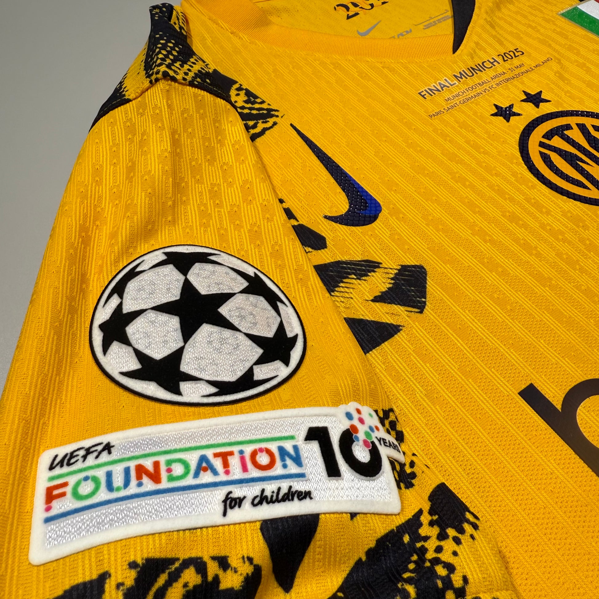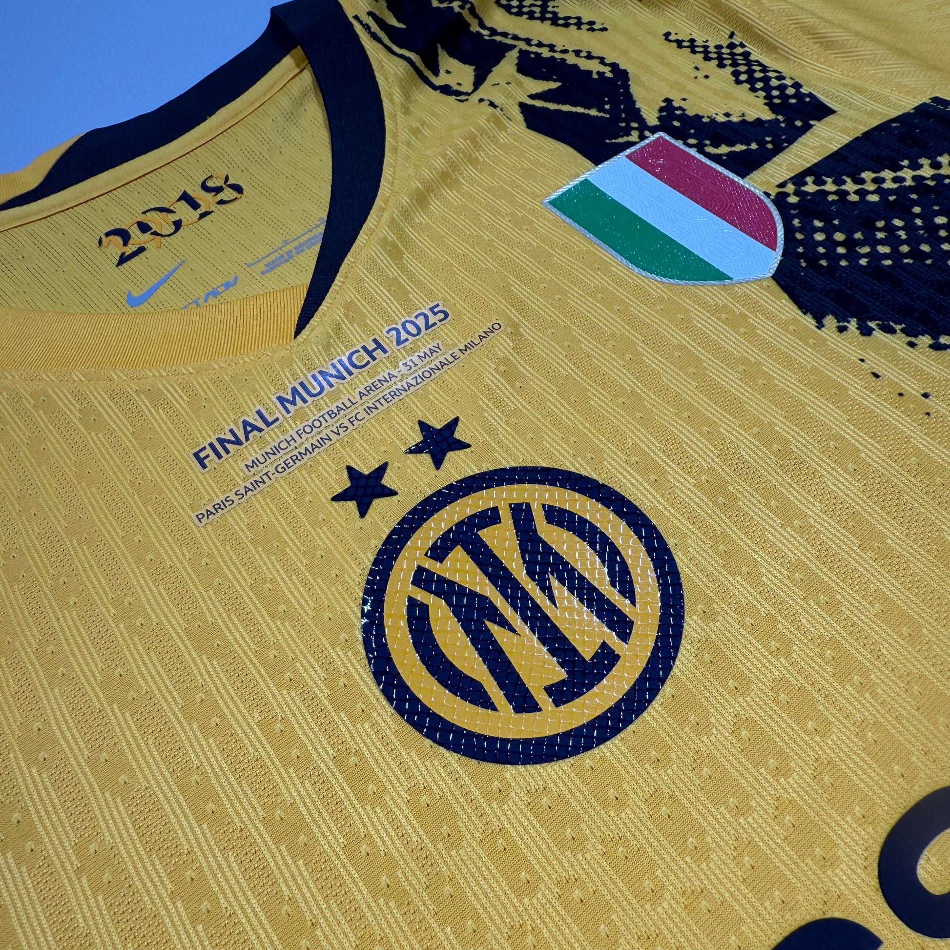 2025UEFAチャンピオンズリーグ決勝の特別仕様モデルです。選手たちが最高の舞台で着用するデザインを忠実に再現しています。こちらの商品は 必ずネーム&ナンバーセットと同時購入 をお願いしております。単体でのご購入はできません。