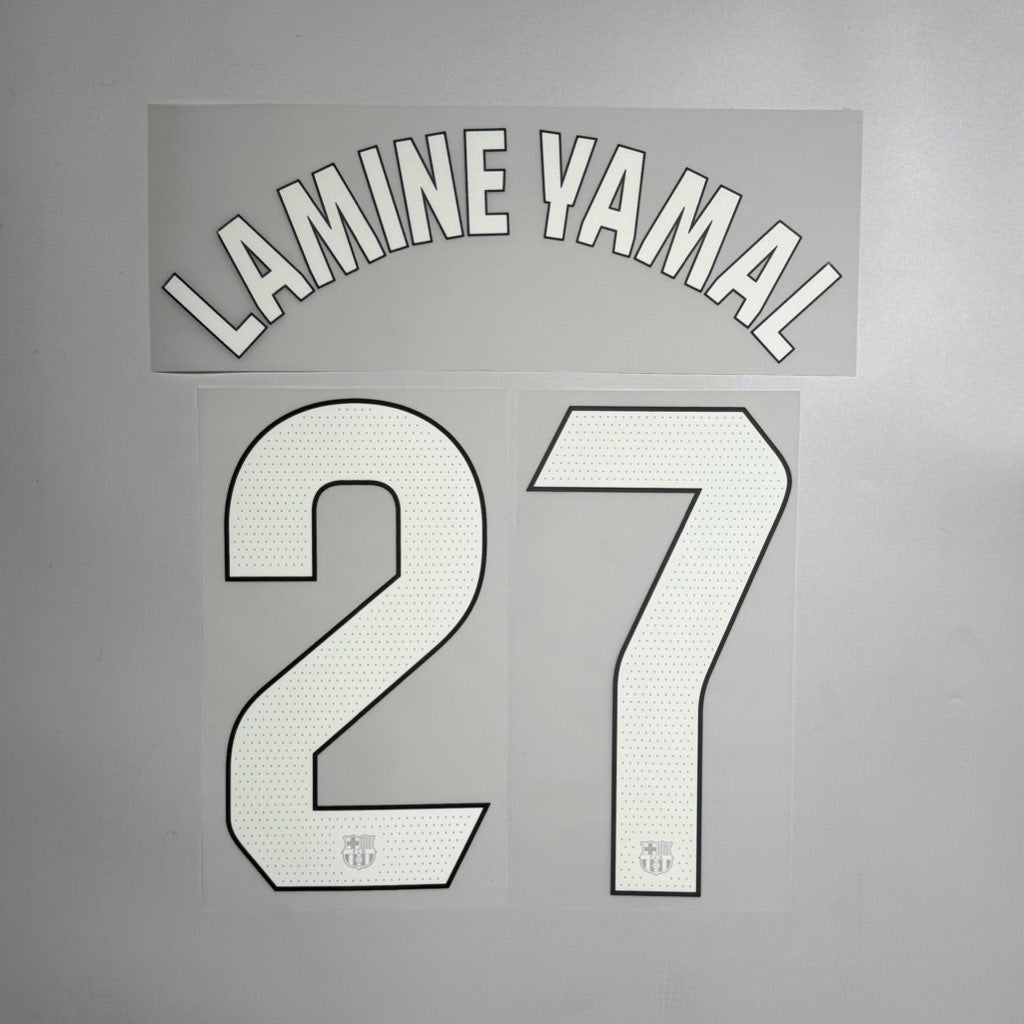 Official #27 Lamine Yamal 23/24 Barcelona Home Name & Number set La Liga Font